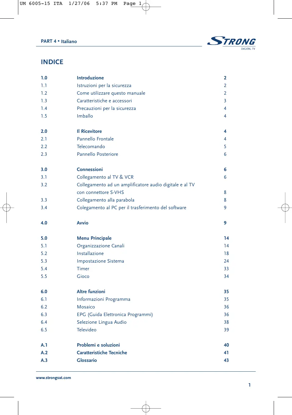 SRT 6015 - Ricevitore satellitare STRONG - Manuale utente e istruzioni gratuiti