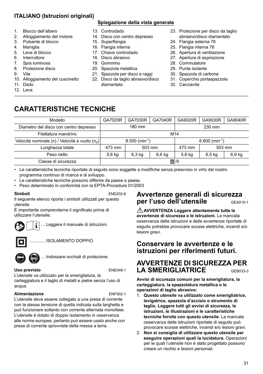 GA7040R - Smerigliatrice MAKITA - Manuale utente e istruzioni gratuiti