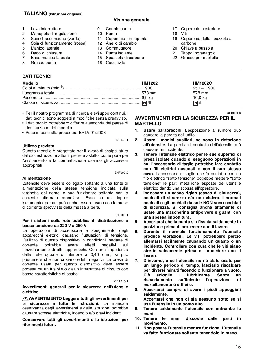MANUALE UTENTE HM1202 MAKITA