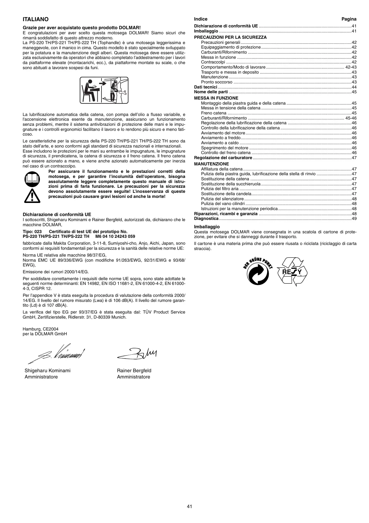 Toutes nos félicitations pour avoir choisi une tronçonneuse DOLMAR ! Nous sommes convaincus que cet outil moderne saura vous satisfaire.