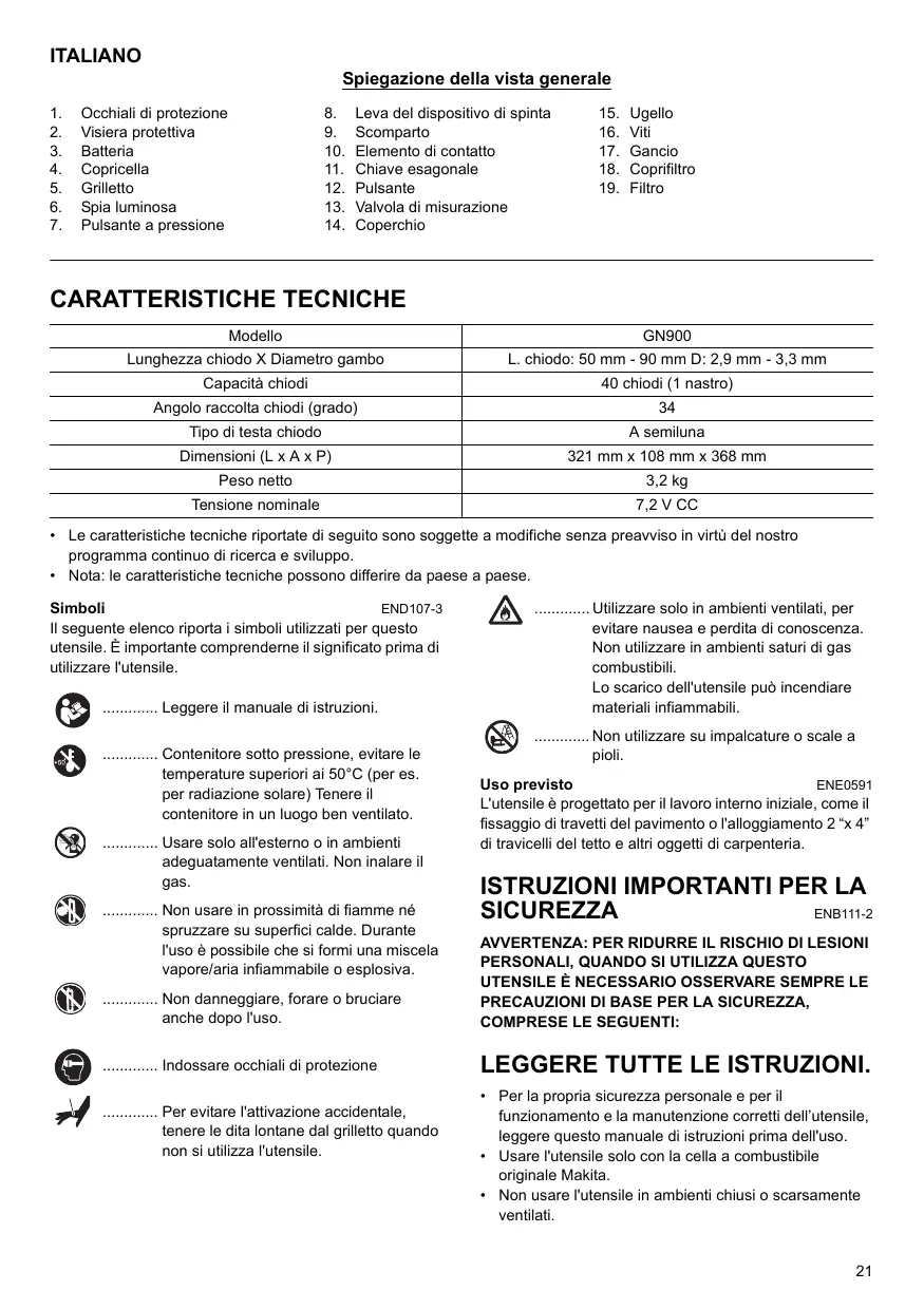 Scarica le istruzioni per il tuo Chiodatrice senza fili in formato PDF gratuitamente! Trova il tuo manuale GN900 - MAKITA e riprendi in mano il tuo dispositivo elettronico. In questa pagina sono pubblicati tutti i documenti necessari per l'utilizzo del tuo dispositivo. GN900 del marchio MAKITA.
