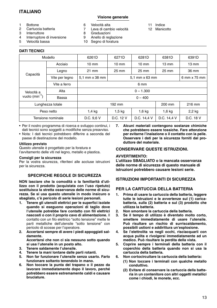| Modello | 6261D | 6271D | 6281D | 6381D | 6391D | |