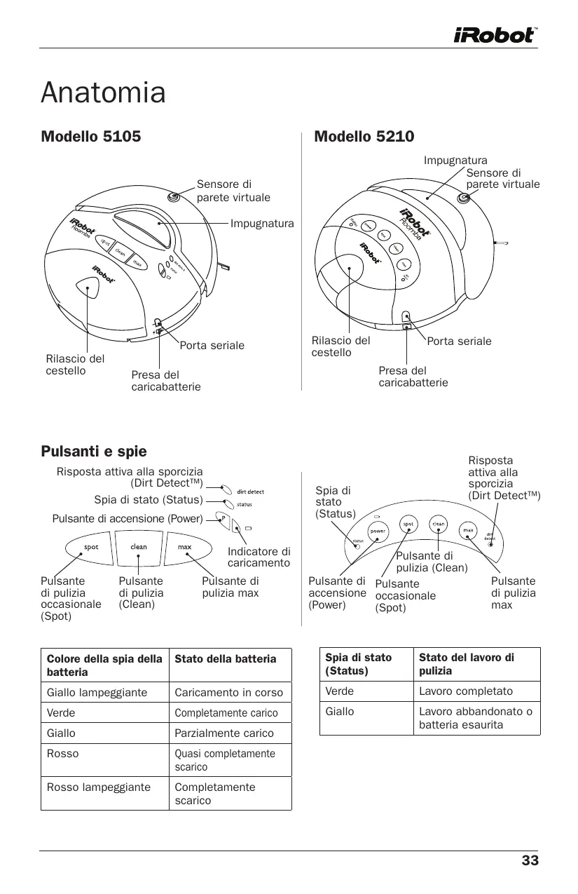 Scarica le istruzioni per il tuo Aspirapolvere robot in formato PDF gratuitamente! Trova il tuo manuale ROOMBA 5105 - IROBOT e riprendi in mano il tuo dispositivo elettronico. In questa pagina sono pubblicati tutti i documenti necessari per l'utilizzo del tuo dispositivo. ROOMBA 5105 del marchio IROBOT.