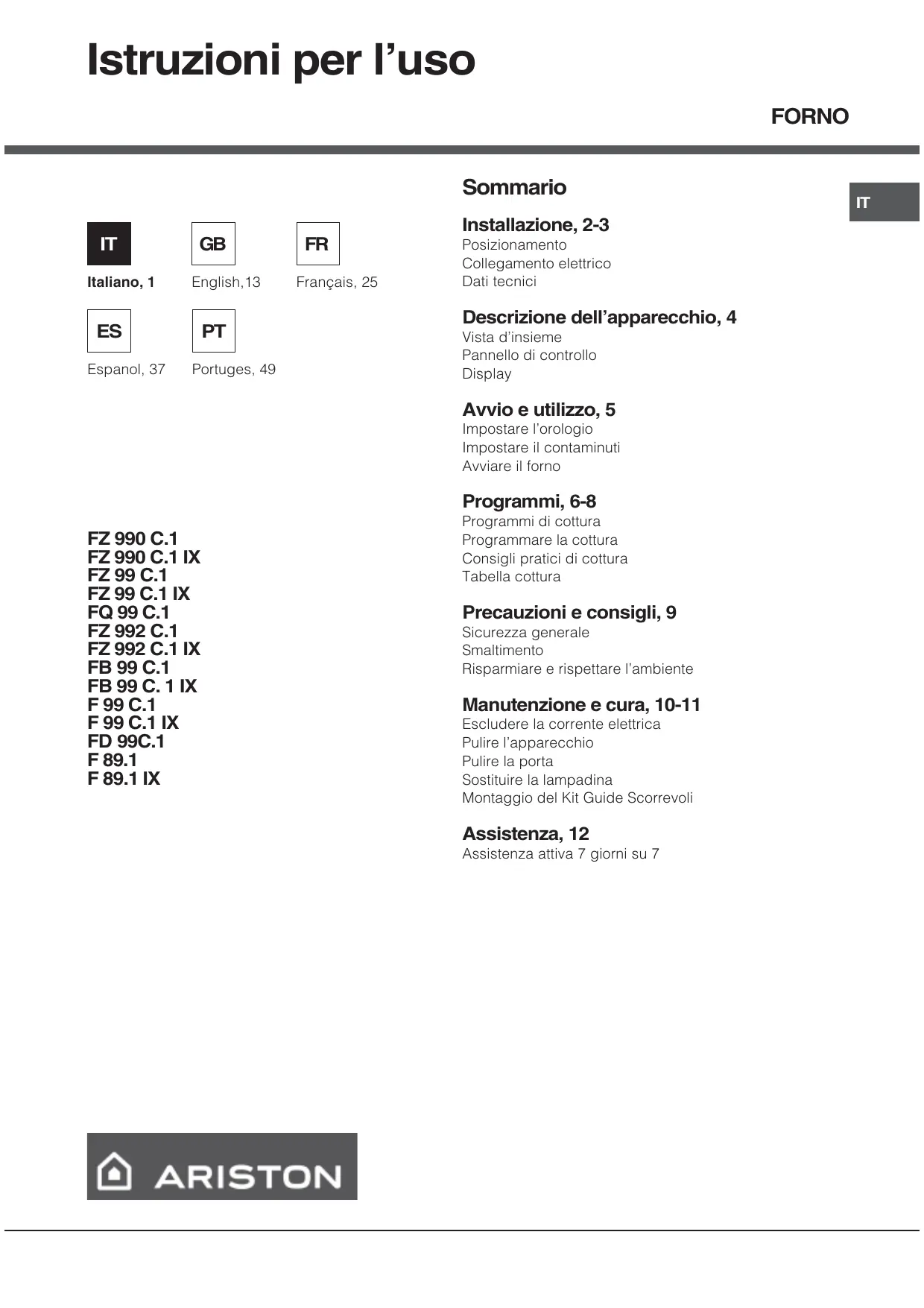 Istruzioni per luso FORNO Sommario IT Italiano, 1