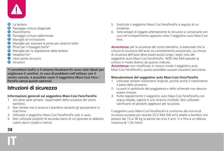 Scarica le istruzioni per il tuo Seggiolino auto in formato PDF gratuitamente! Trova il tuo manuale FERO - MAXI-COSI e riprendi in mano il tuo dispositivo elettronico. In questa pagina sono pubblicati tutti i documenti necessari per l'utilizzo del tuo dispositivo. FERO del marchio MAXI-COSI.