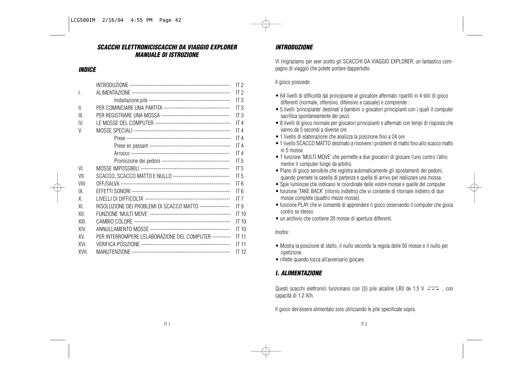 VIII. OFF/SALVA Terminata una partita, potete cominciarne un’altra premendo NEW, o spegnere il computer, premendo il tasto OFF/SALVA.