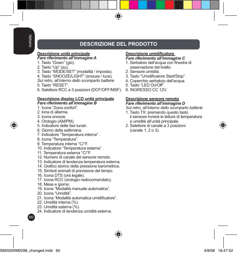 4/8/08 16:47:53 Italiano Configurazione modalità d’uso dell’umidificatore (manuale / automatica)