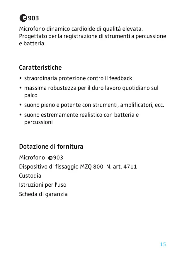 E903 - Microfono SENNHEISER - Manuale utente e istruzioni gratuiti