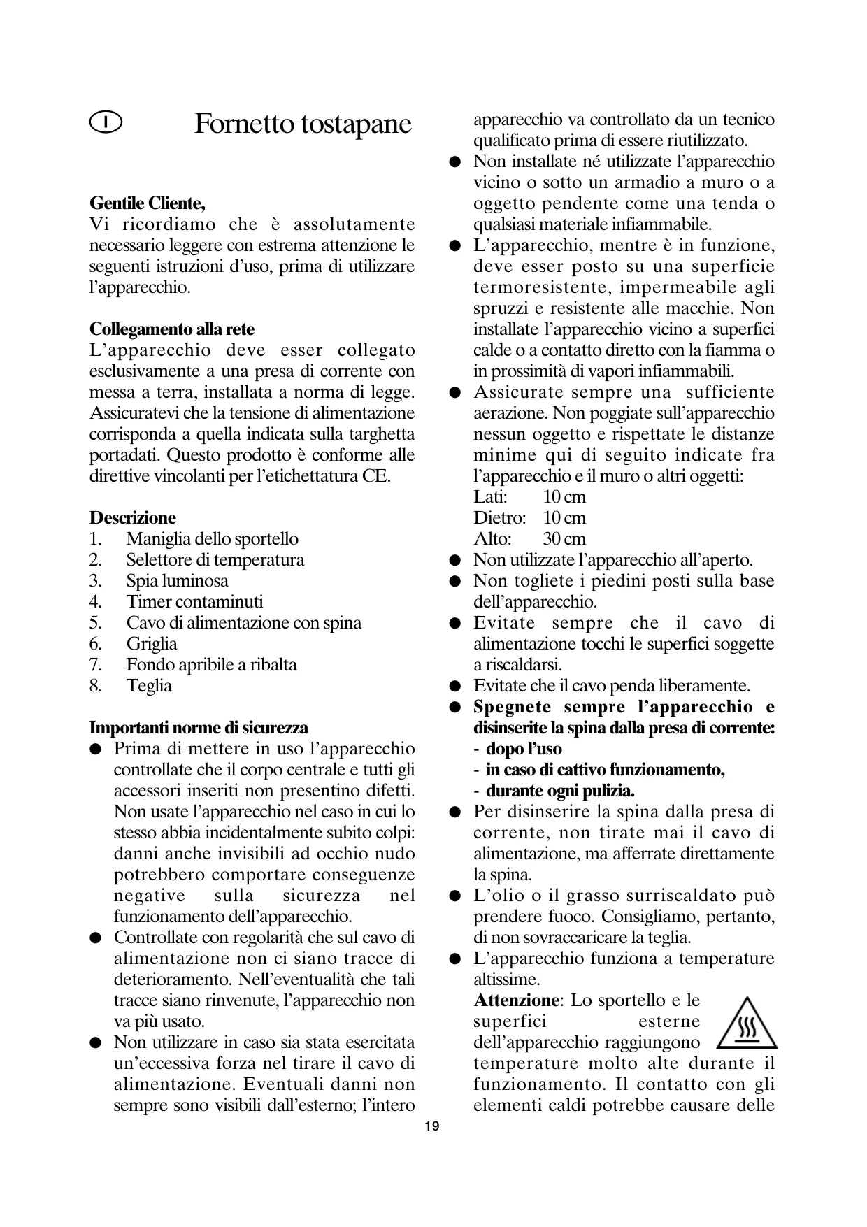 Attenzione: Lo sportello e le superfici esterne dell'apparecchio raggiungono