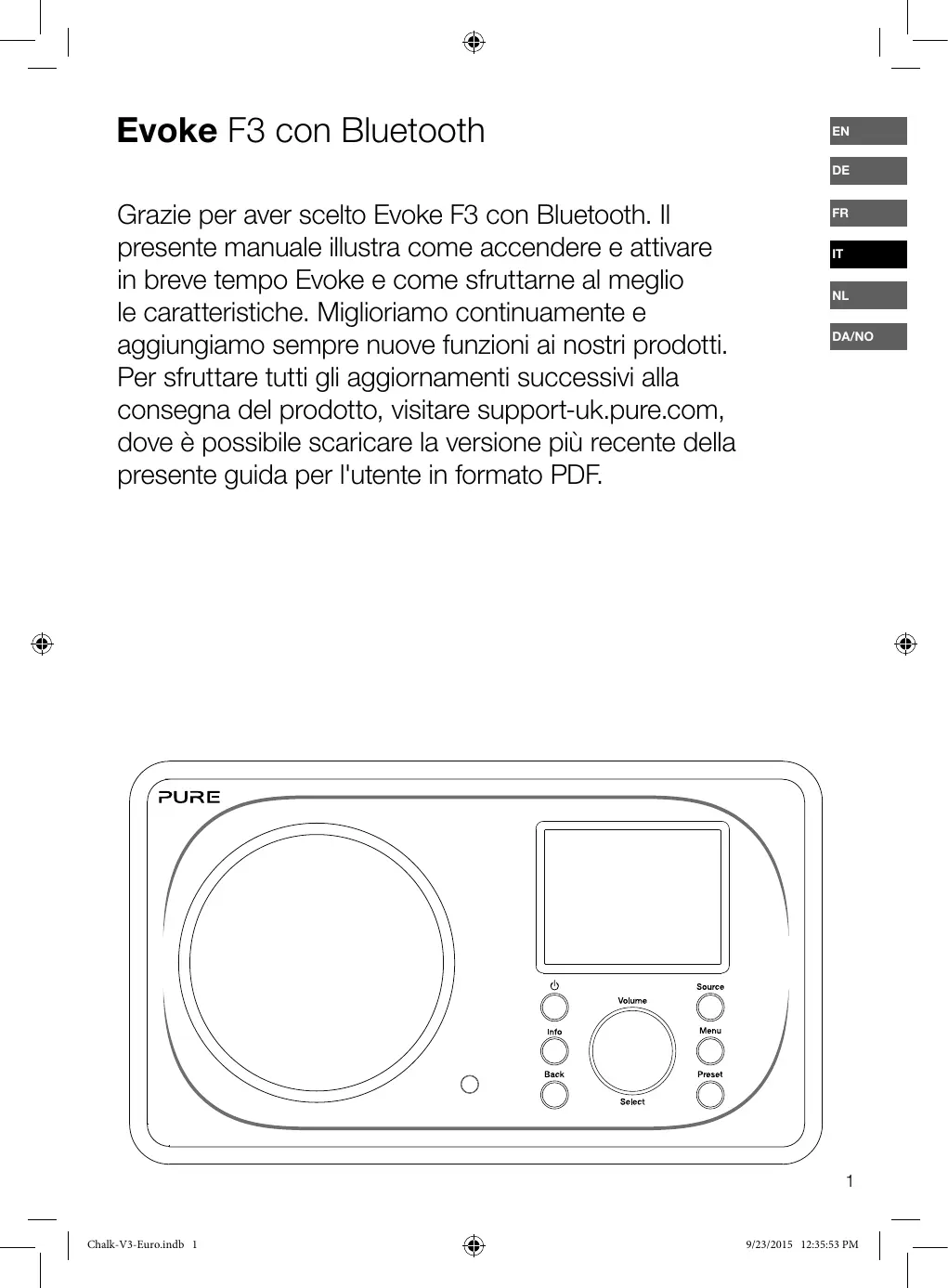 Scarica le istruzioni per il tuo in formato PDF gratuitamente! Trova il tuo manuale EVOKE F3 - PURE e riprendi in mano il tuo dispositivo elettronico. In questa pagina sono pubblicati tutti i documenti necessari per l'utilizzo del tuo dispositivo. EVOKE F3 del marchio PURE.