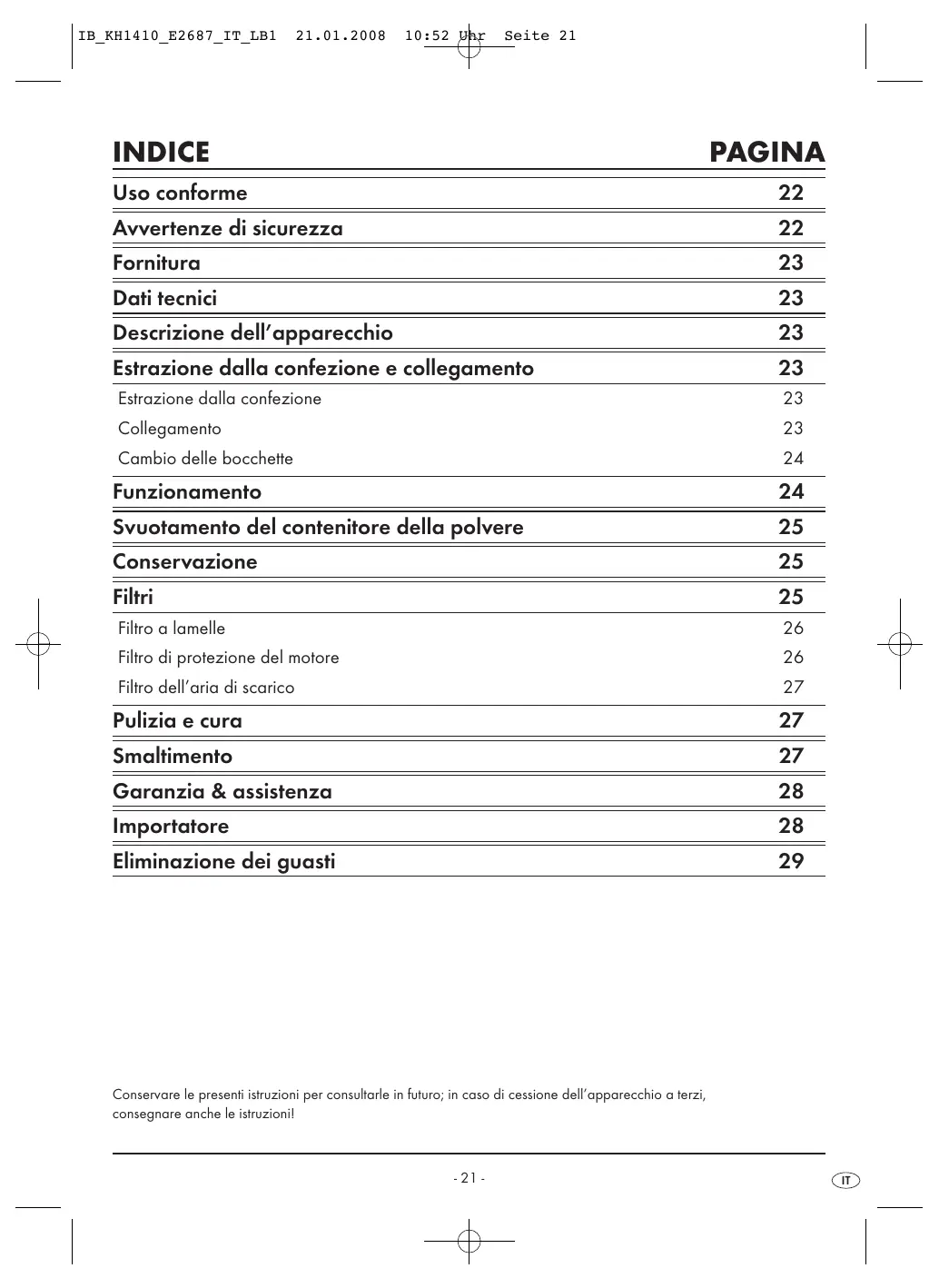 MANUALE UTENTE KH 1410 LERVIA