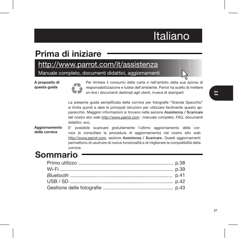 GRANDE SPECCHIO - PARROT - Manuale utente e istruzioni gratuiti