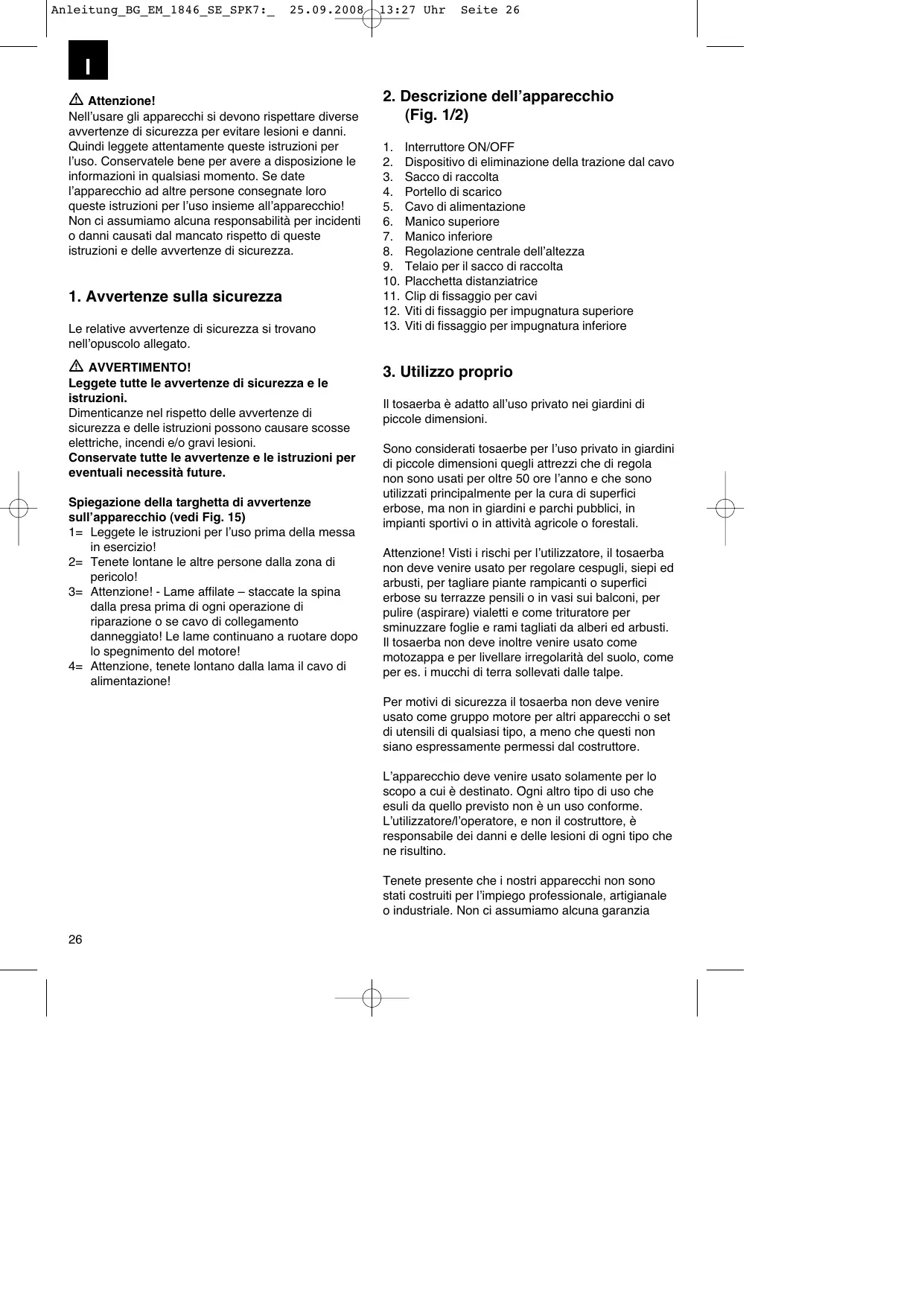 BG-EM 1846 SE - Tosaerba EINHELL - Manuale utente e istruzioni gratuiti