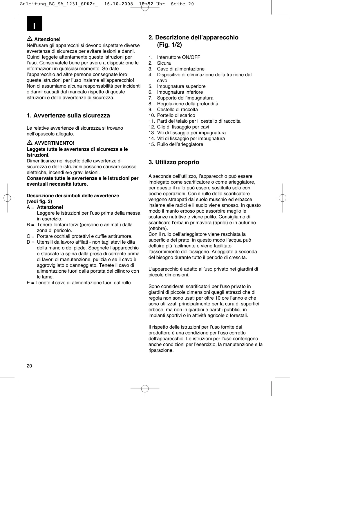 Scarica le istruzioni per il tuo Scarificatore in formato PDF gratuitamente! Trova il tuo manuale BG-SA 1231 - EINHELL e riprendi in mano il tuo dispositivo elettronico. In questa pagina sono pubblicati tutti i documenti necessari per l'utilizzo del tuo dispositivo. BG-SA 1231 del marchio EINHELL.
