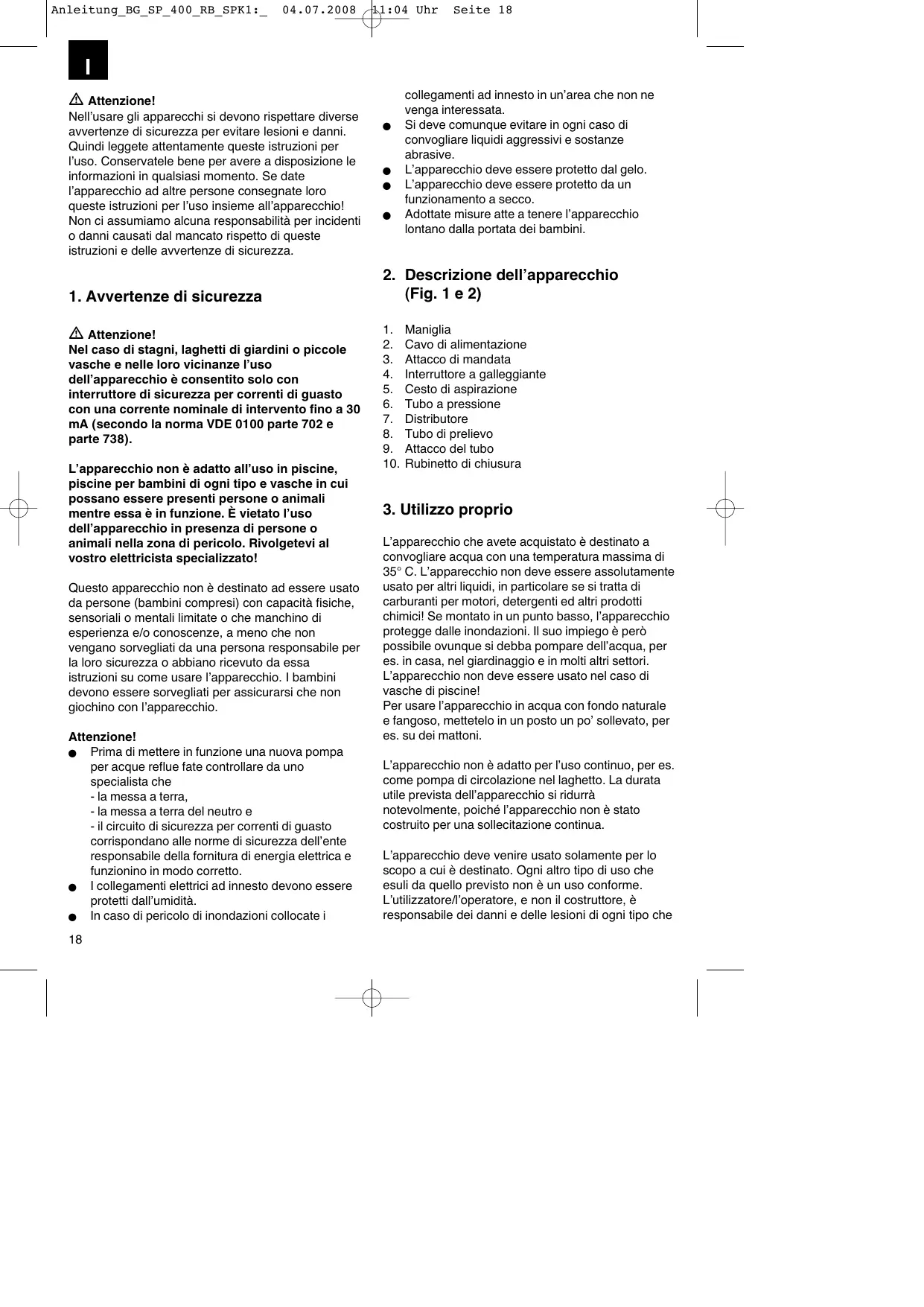 Scarica le istruzioni per il tuo Pompa di superficie in formato PDF gratuitamente! Trova il tuo manuale BG-SP 400 RB - EINHELL e riprendi in mano il tuo dispositivo elettronico. In questa pagina sono pubblicati tutti i documenti necessari per l'utilizzo del tuo dispositivo. BG-SP 400 RB del marchio EINHELL.