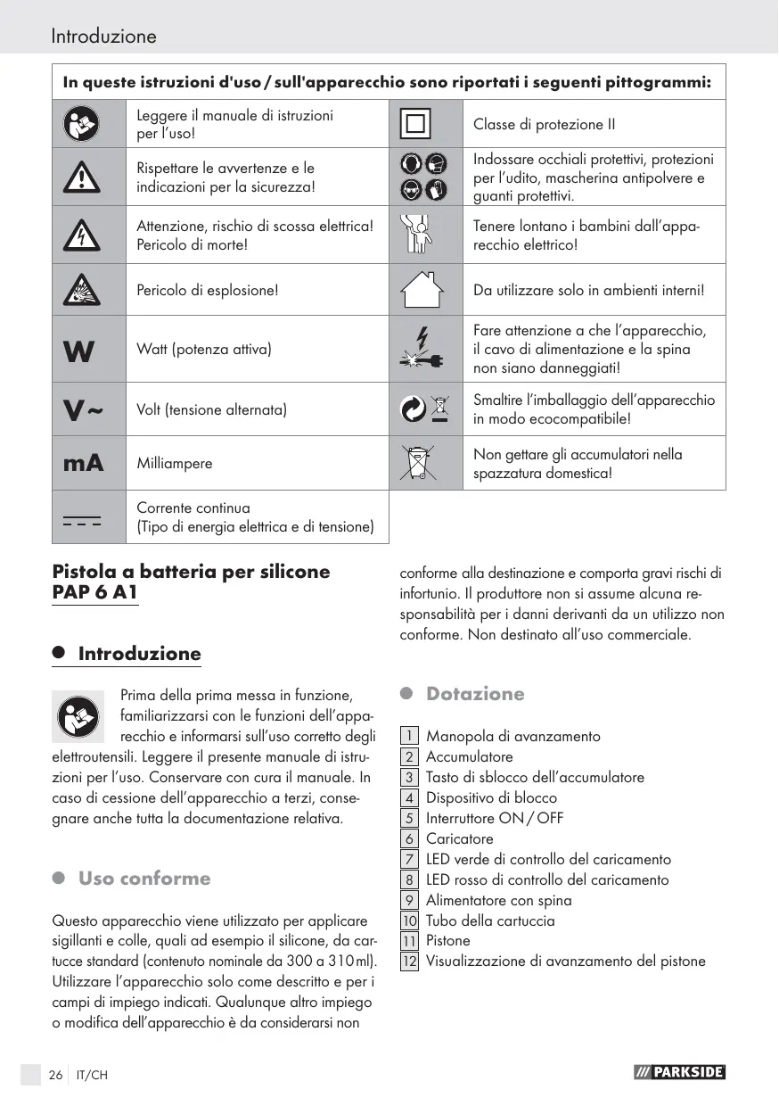 MANUALE UTENTE PAP 6 A1 PARKSIDE