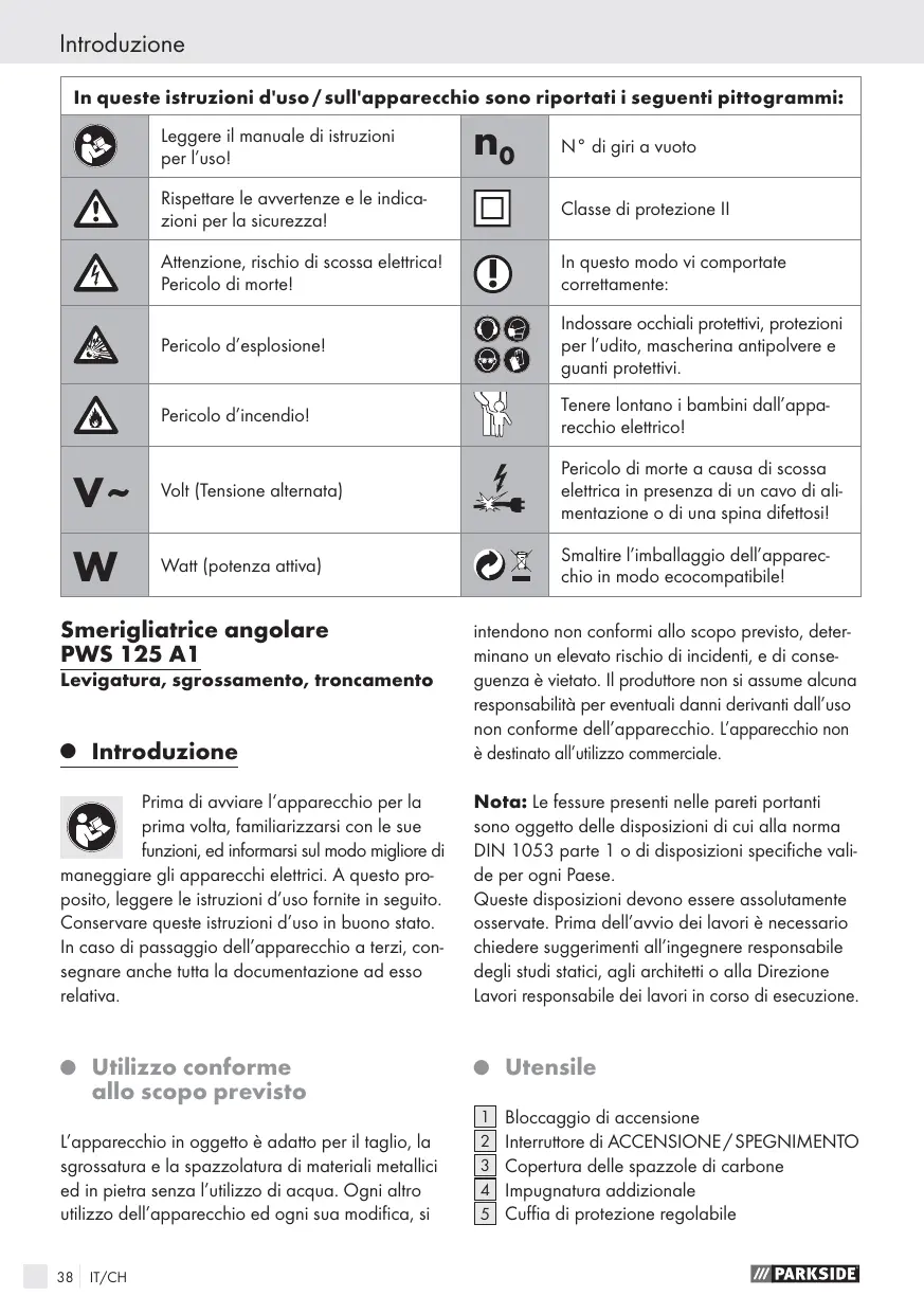 PWS 125 A1 ANGLE GRINDER - Utensile elettrico PARKSIDE - Manuale utente e istruzioni gratuiti