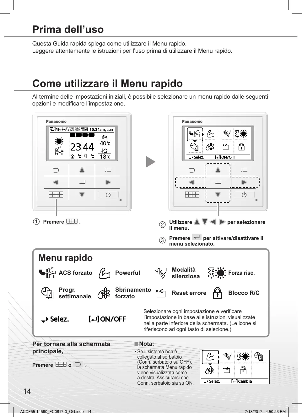 Leggere attendamente le istruzioni per l'uso prima di utilizzato il Menu rapido.