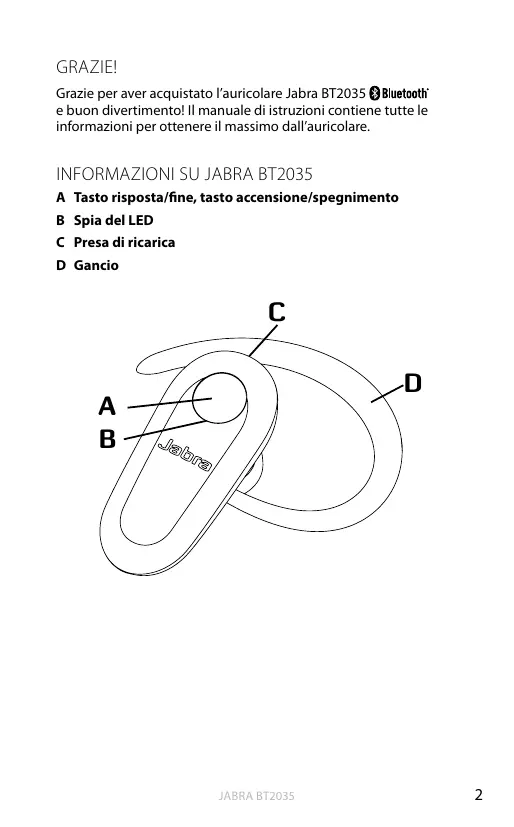 BT2035 - écouteur Bluetooth JABRA - Manuale utente e istruzioni gratuiti
