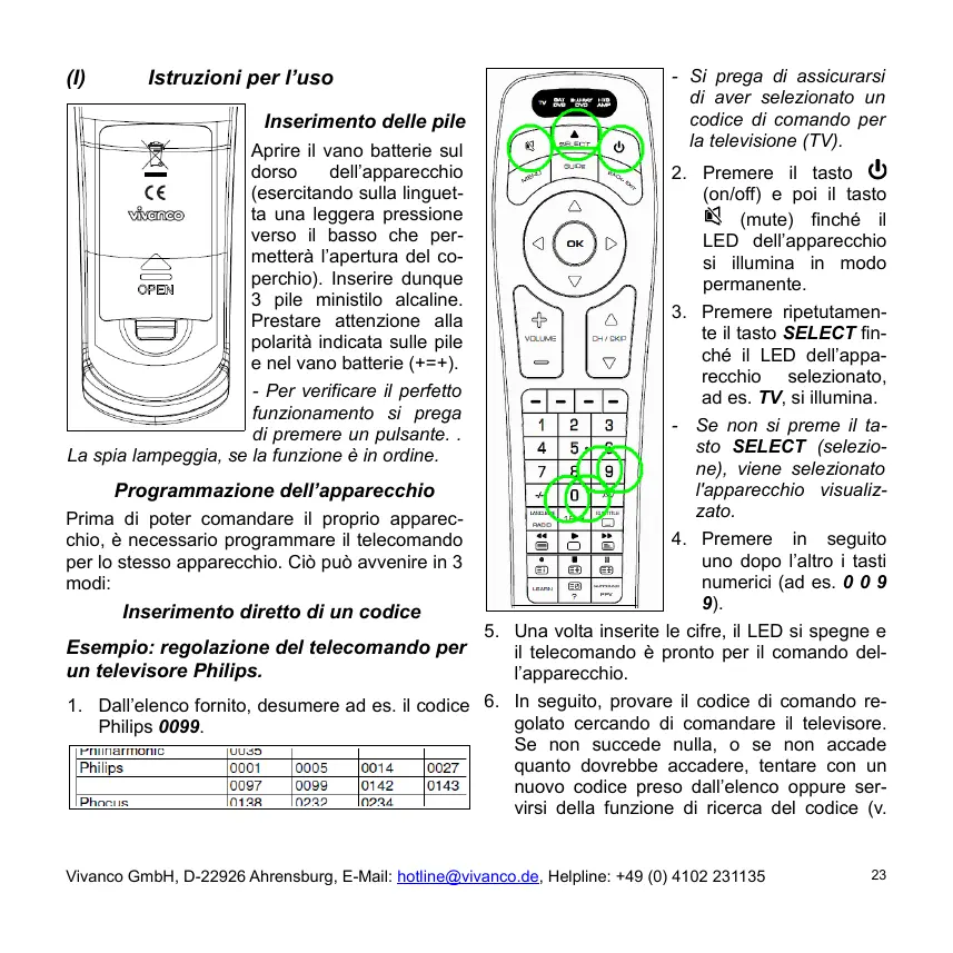 Vivanco GmbH, D-22926 Ahrensburg, E-Mail: hotline@vivanco.de, Helpline: +49 (0) 4102 231135