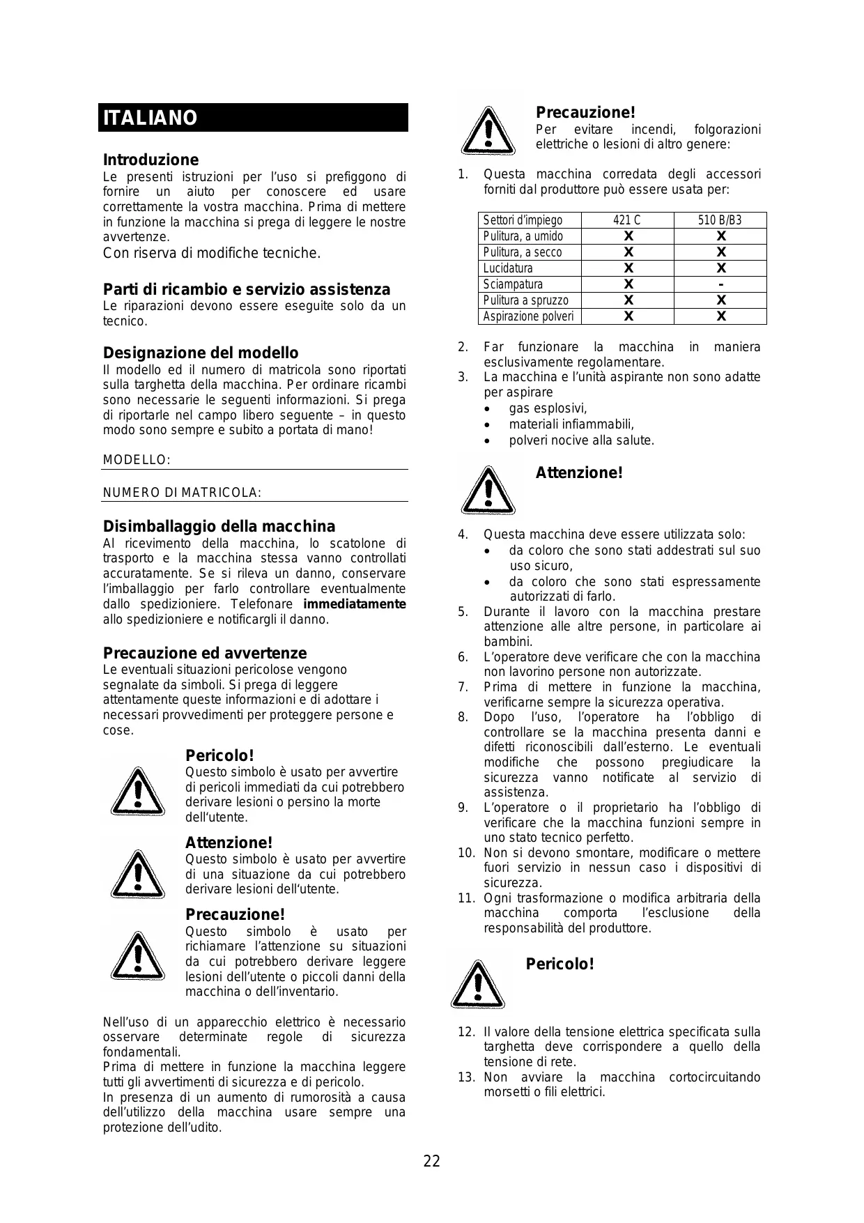 Scarica le istruzioni per il tuo in formato PDF gratuitamente! Trova il tuo manuale 421 C-510 B - NILFISK e riprendi in mano il tuo dispositivo elettronico. In questa pagina sono pubblicati tutti i documenti necessari per l'utilizzo del tuo dispositivo. 421 C-510 B del marchio NILFISK.