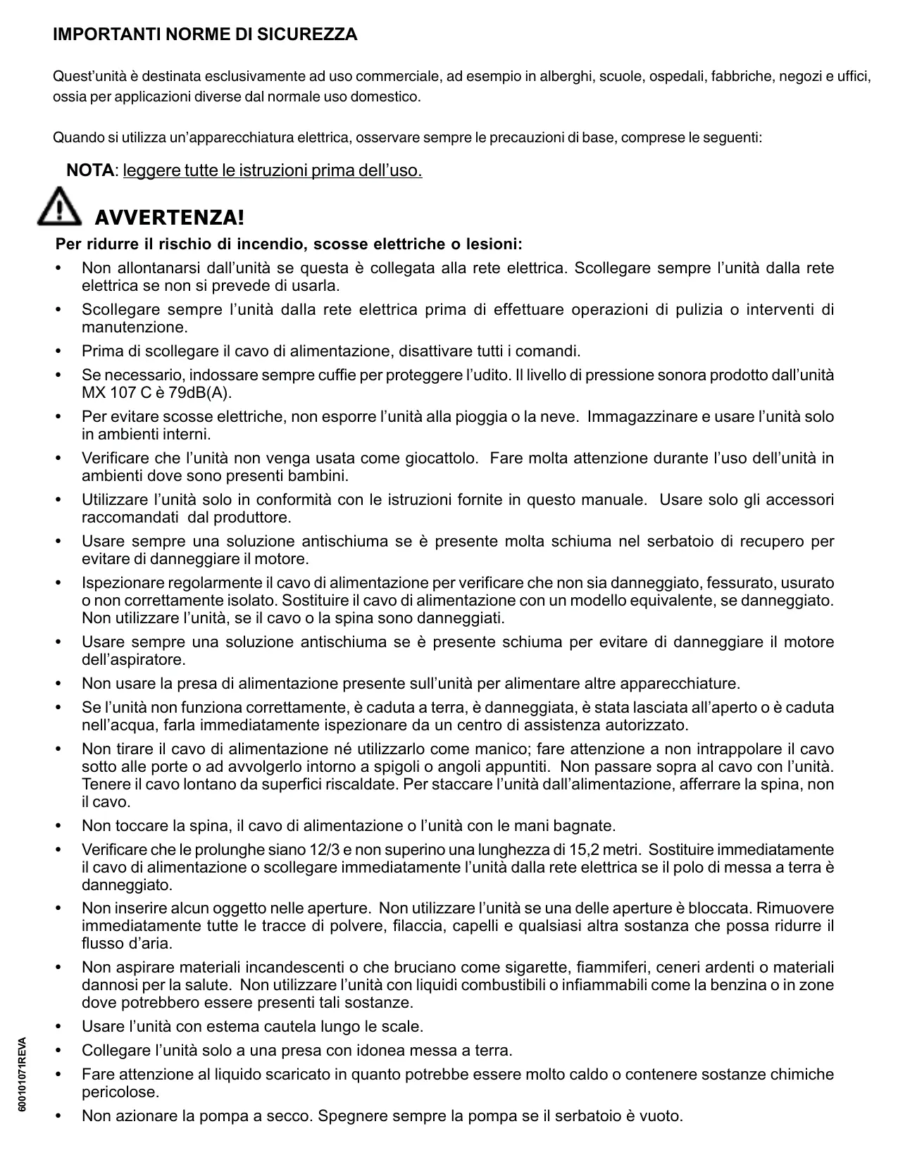 MX 107C - Aspirapolvere industriale NILFISK - Manuale utente e istruzioni gratuiti