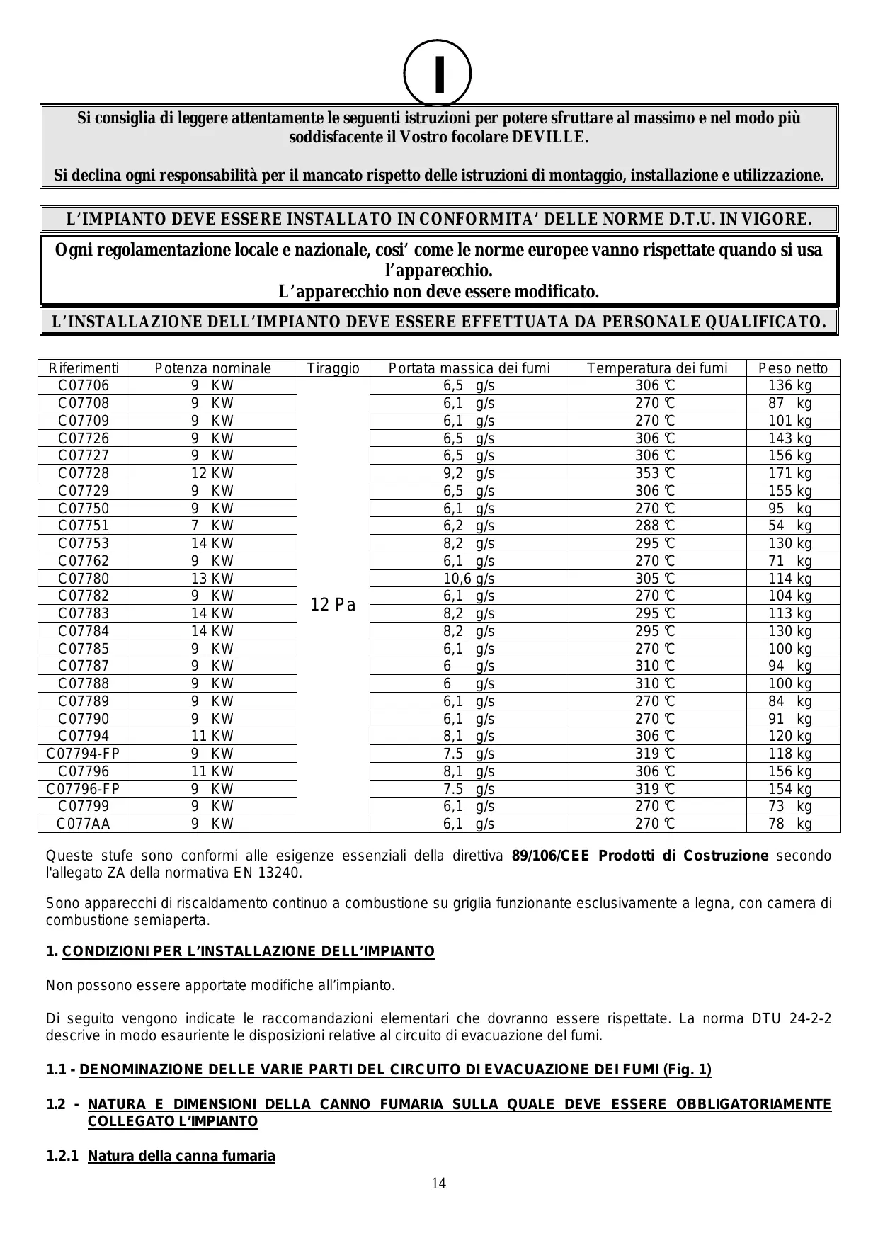 L’appareil ne doit pas être modifié. L’INSTALLATION PAR UN PROFESSIONNEL QUALIFIE EST RECOMMANDEE. Référence C07706 C07708 1. CONDITIONS D’INSTALLATION DE L’APPAREIL L'installation ne devra pas être modifiée par l'utilisateur. Nous rappelons ci-après les recommandations élémentaires à respecter. Le DTU 24-2-2 décrit de façon complète les dispositions nécessaires concernant le circuit d’évacuation des fumées. 1.1 - DöNOMINATION DES DIVERSES PARTIES DU CIRCUIT D'öVACUATION DES FUMöES (Fig. 1) 1.2 - NATURE ET CARACTöRISTIQUES DIMENSIONNELLES DU CONDUIT DE FUMöE AUQUEL DOIT ÊTRE OBLIGATOIREMENT RACCORDö L'APPAREIL 1.2.1 Nature du conduit de fumée 2