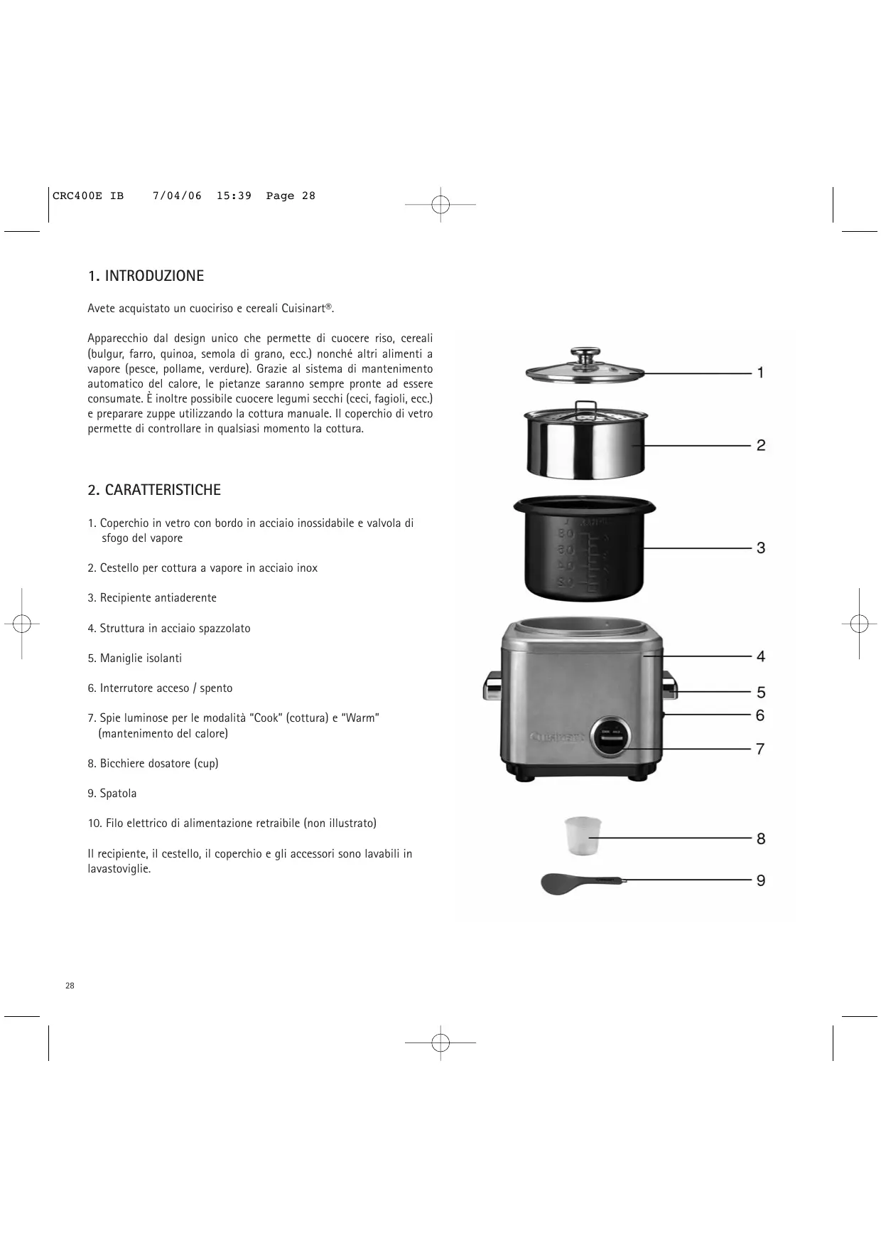 Scarica le istruzioni per il tuo Cuociriso in formato PDF gratuitamente! Trova il tuo manuale CRC400E - CUISINART e riprendi in mano il tuo dispositivo elettronico. In questa pagina sono pubblicati tutti i documenti necessari per l'utilizzo del tuo dispositivo. CRC400E del marchio CUISINART.