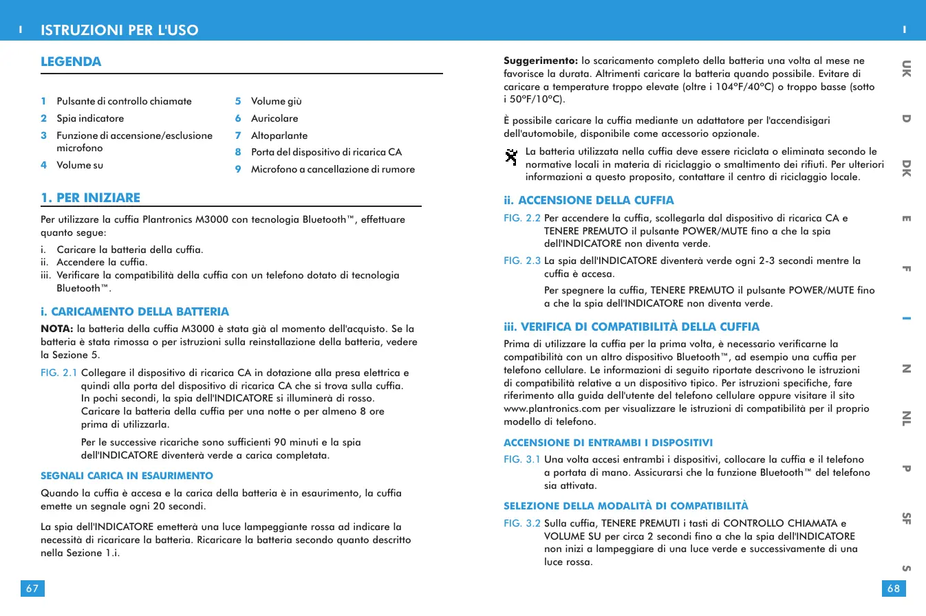 M3000 - Cuffie Bluetooth PLANTRONICS - Manuale utente e istruzioni gratuiti