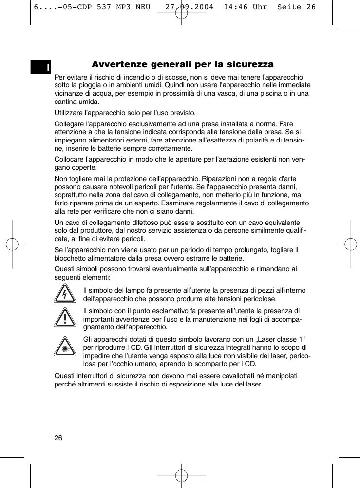 MANUALE UTENTE CDP 537 MP3 CLATRONIC