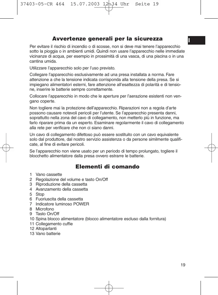 Scarica le istruzioni per il tuo Lettore CD in formato PDF gratuitamente! Trova il tuo manuale CR 464 - CLATRONIC e riprendi in mano il tuo dispositivo elettronico. In questa pagina sono pubblicati tutti i documenti necessari per l'utilizzo del tuo dispositivo. CR 464 del marchio CLATRONIC.