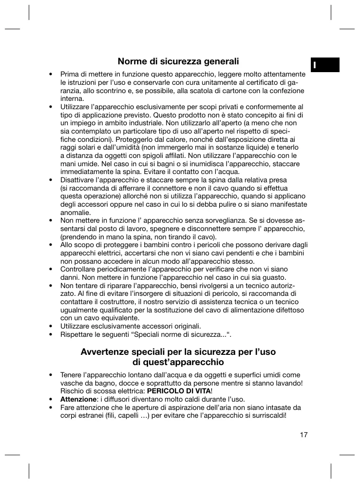 - Prima di mettere in funzione quello apparecchio, leggere molto attentamente le istruzioni per l'uso e conservarle con cura unitamente al certificato di garanzia, allo scontrino e, se possibile, alla scatola di cartone con la confazione interna.