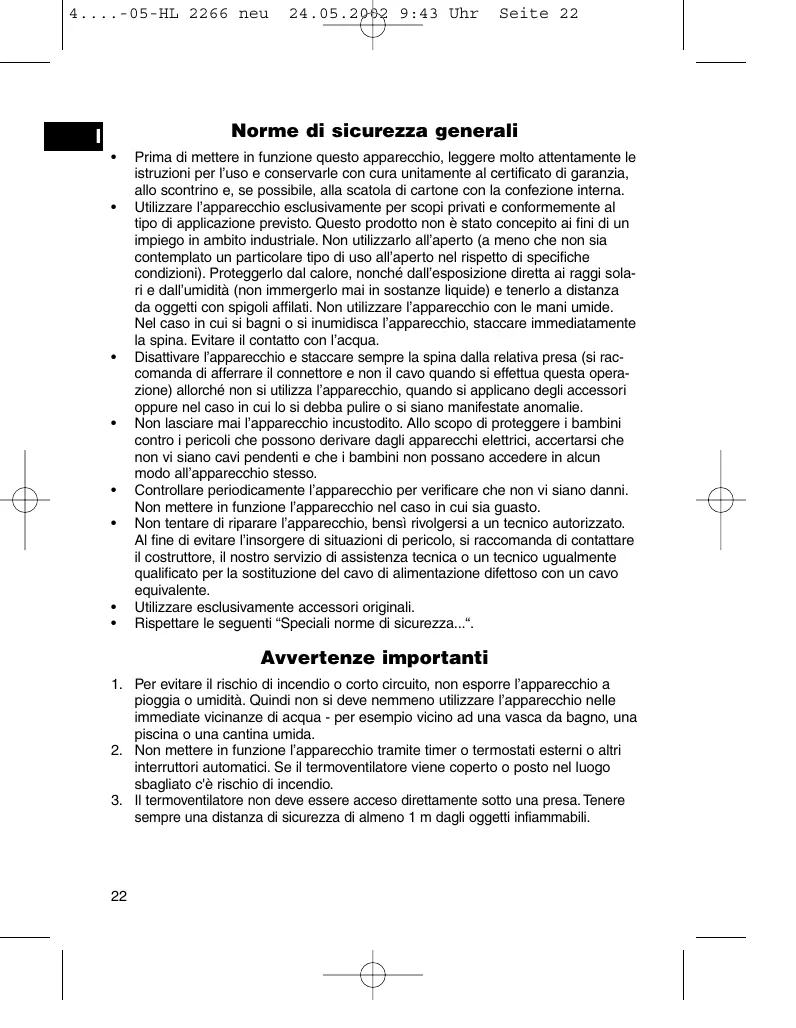 Istruzioni per l'uso . 22