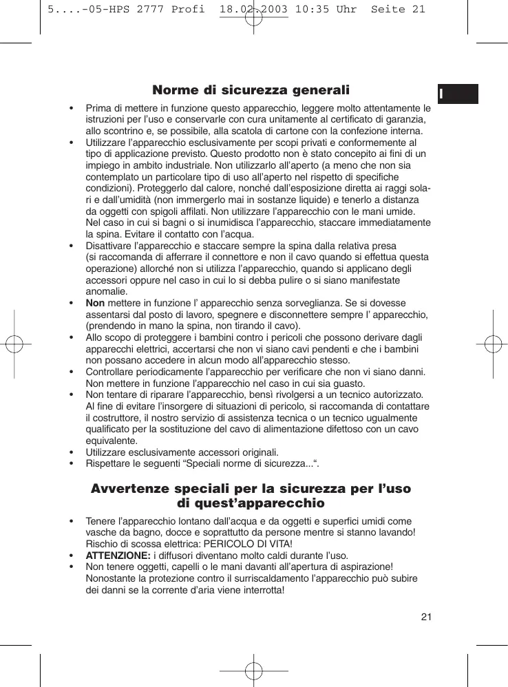Scarica le istruzioni per il tuo Asciugacapelli in formato PDF gratuitamente! Trova il tuo manuale HPS 2777 - CLATRONIC e riprendi in mano il tuo dispositivo elettronico. In questa pagina sono pubblicati tutti i documenti necessari per l'utilizzo del tuo dispositivo. HPS 2777 del marchio CLATRONIC.
