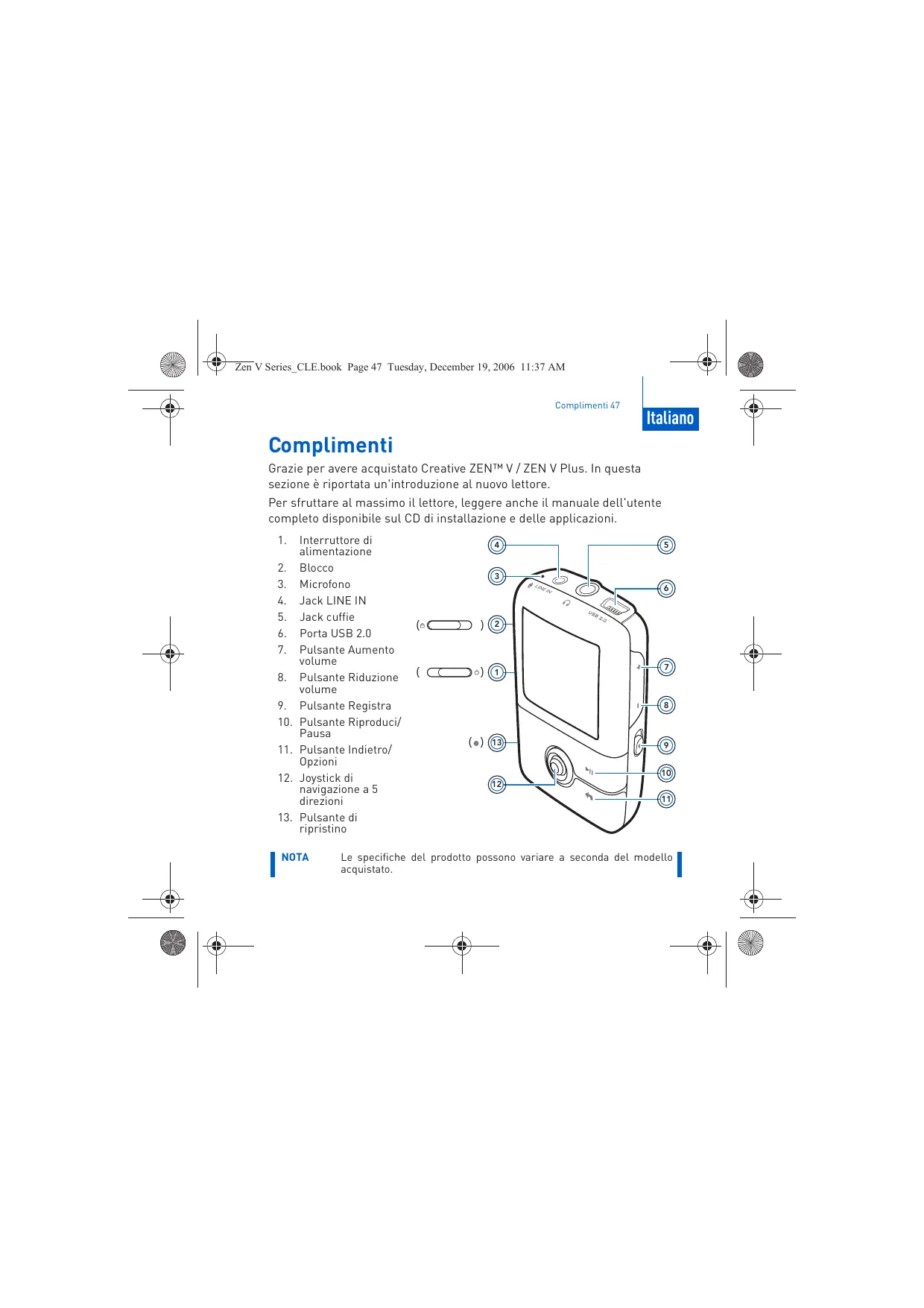 MANUALE UTENTE ZEN V PLUS CREATIVE