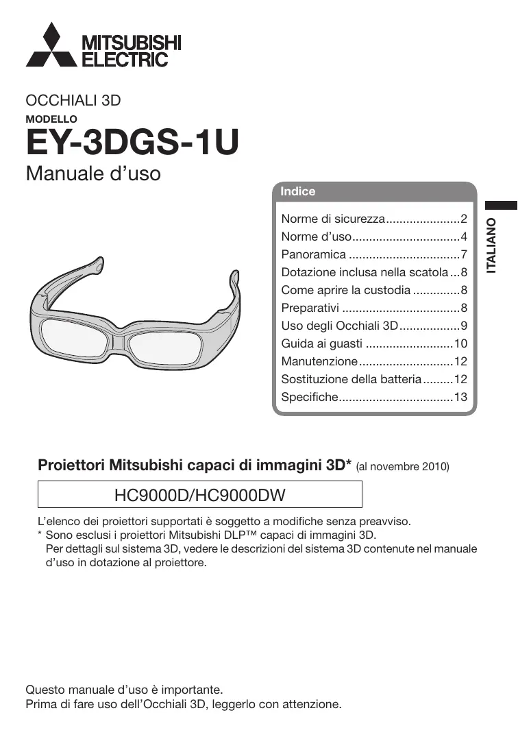 Questo manuale d’uso è importante. Prima di fare uso dell’Occhiali 3D, leggerlo con attenzione.