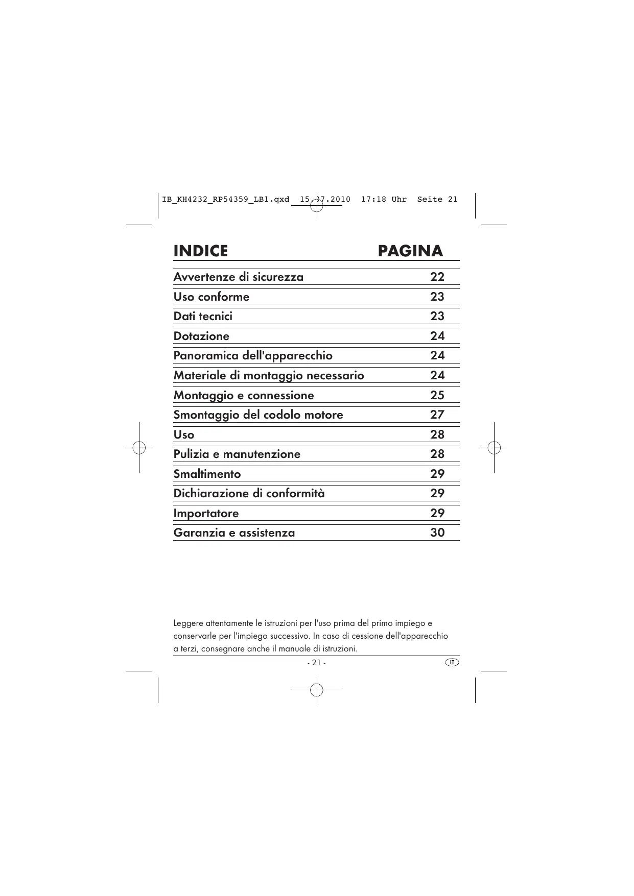 17:18 Uhr Seite 22 Avvertenze di sicurezza Per evitare il rischio di infortuni e danni all'apparecchio: