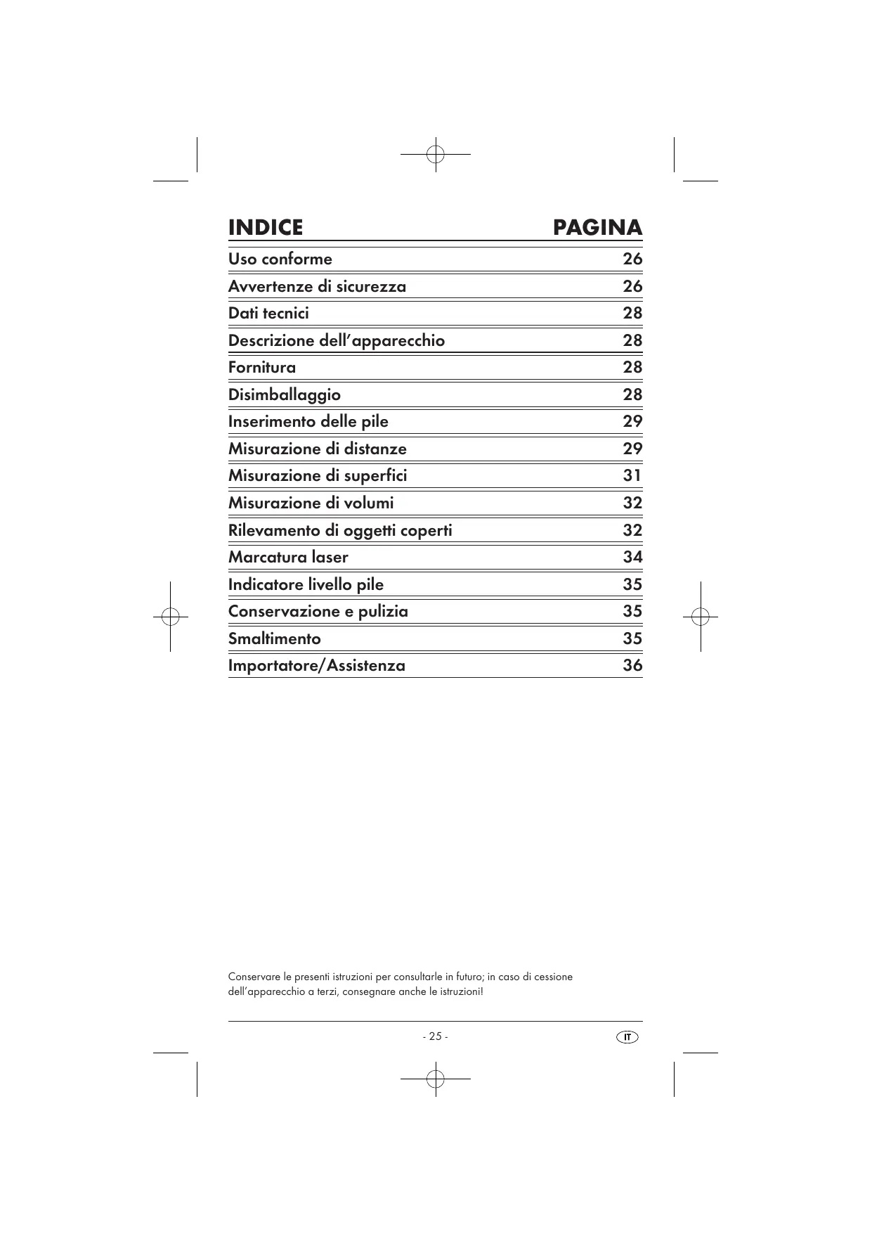 L'apparecchio contiene un laser di classe II. Non dirigere mai il laser contro persono o animali. Non guardare direttamente nel laser. Il laser più provocare danni oculari.