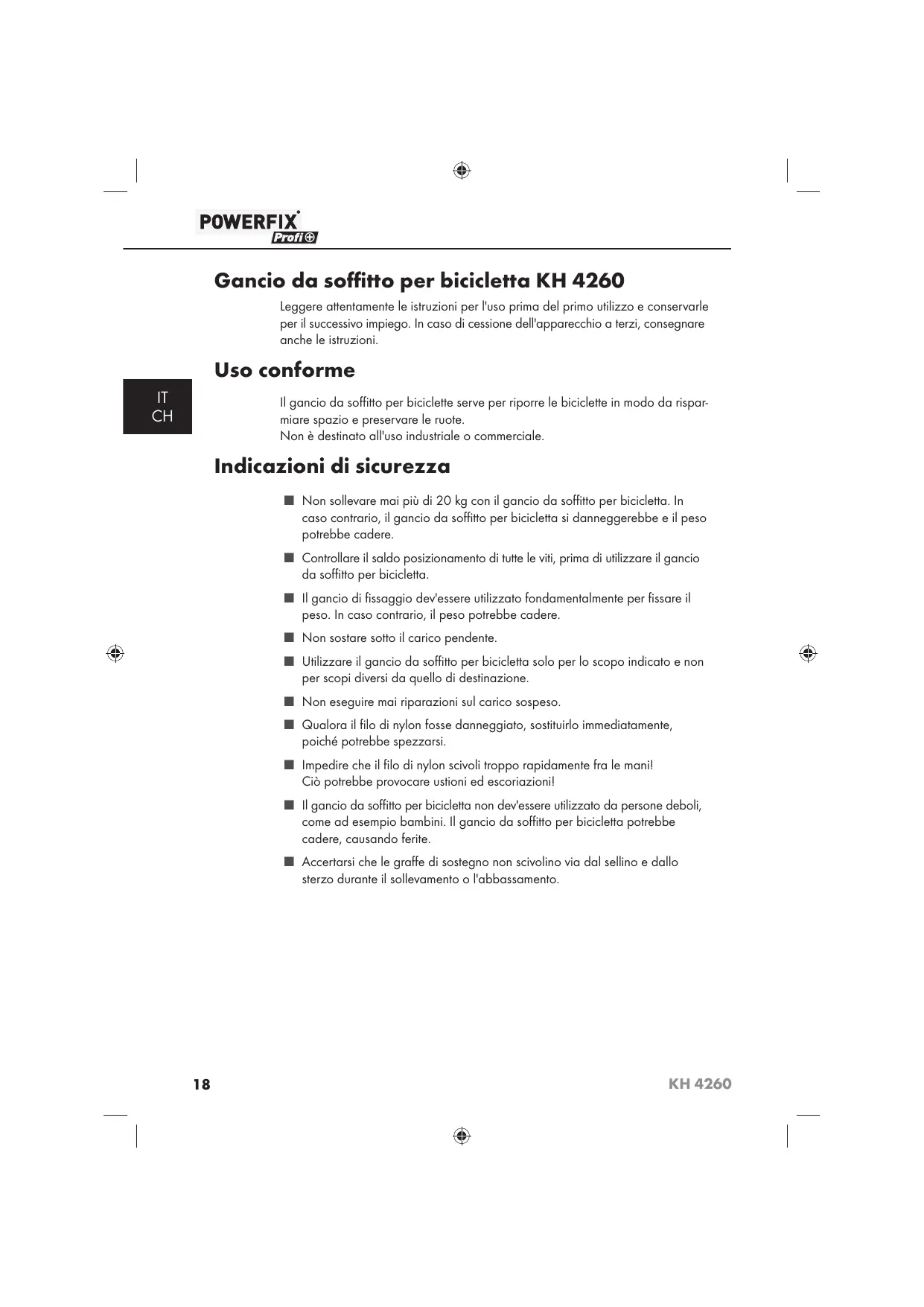 Trova gratuitamente il manuale del dispositivo KH 4260 BICYCLE HOIST POWERFIX in formato PDF.