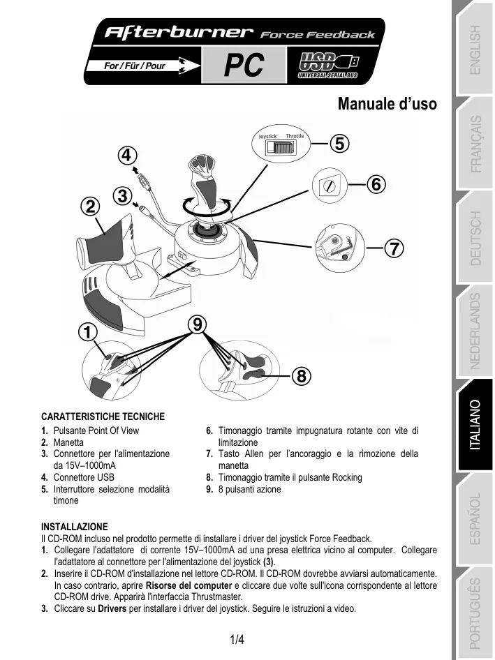 Scarica le istruzioni per il tuo Joystick in formato PDF gratuitamente! Trova il tuo manuale TOP GUN AFTERBURNER FORCE FEEDBACK - THRUSTMASTER e riprendi in mano il tuo dispositivo elettronico. In questa pagina sono pubblicati tutti i documenti necessari per l'utilizzo del tuo dispositivo. TOP GUN AFTERBURNER FORCE FEEDBACK del marchio THRUSTMASTER.