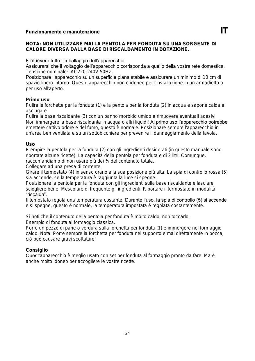 Si noti che il contentuto della pentola per fonduta è molto caldo, non toccarlo.