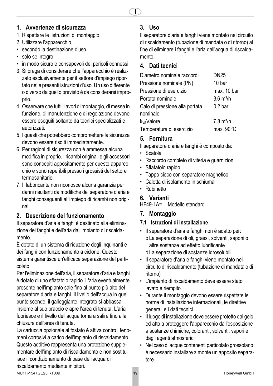 Honeywell GmbH I 1. Avvertenze di sicurezza