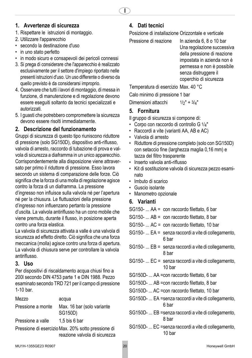 Scarica le istruzioni per il tuo Indefinito in formato PDF gratuitamente! Trova il tuo manuale SG150 - HONEYWELL e riprendi in mano il tuo dispositivo elettronico. In questa pagina sono pubblicati tutti i documenti necessari per l'utilizzo del tuo dispositivo. SG150 del marchio HONEYWELL.