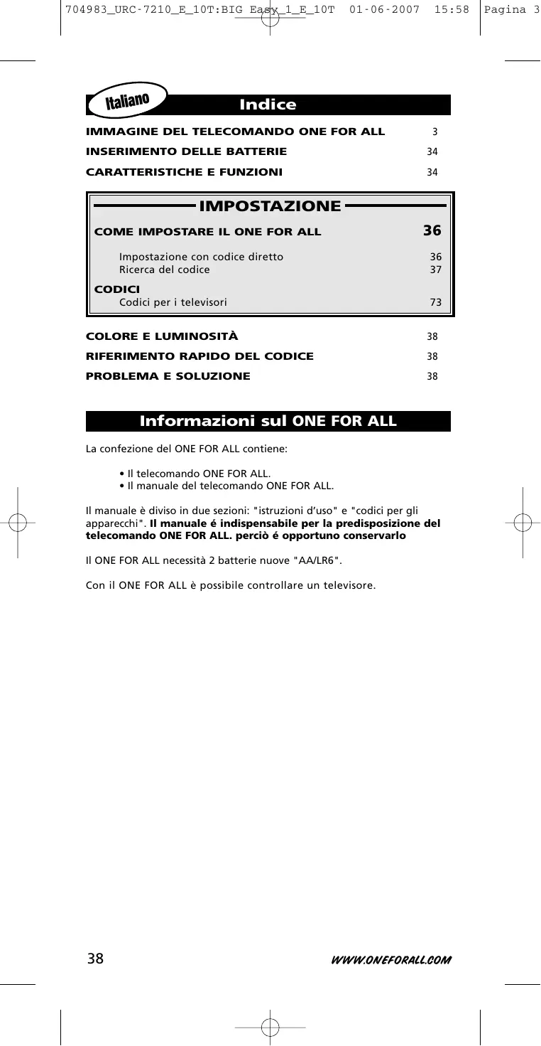 URC 7210 - Telecomando universale ONEFORALL - Manuale utente e istruzioni gratuiti