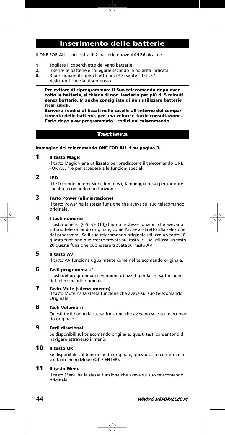 URC 7711 - Telecomando universale ONEFORALL - Manuale utente e istruzioni gratuiti