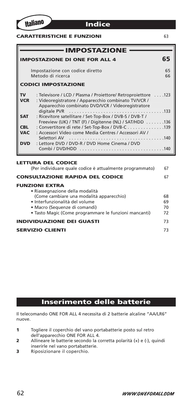URC 7940 - Telecomando universale ONEFORALL - Manuale utente e istruzioni gratuiti