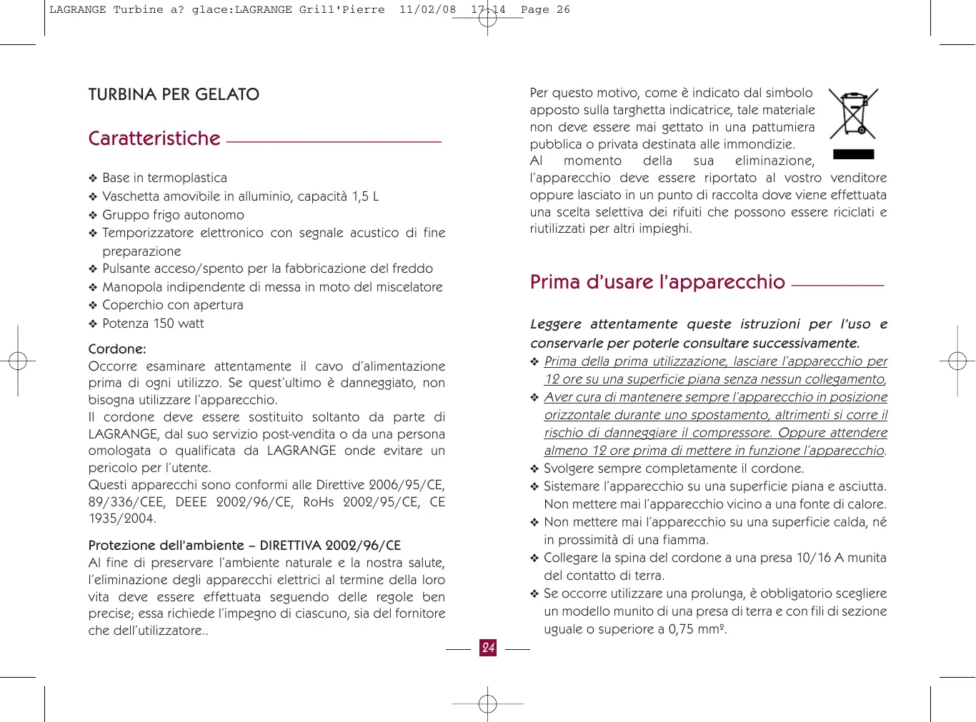Per benefici gratuitamente di un anno supplementare di garanzia, iscriversi sul site Internet LAGRANGE (www.lagrange.fr).