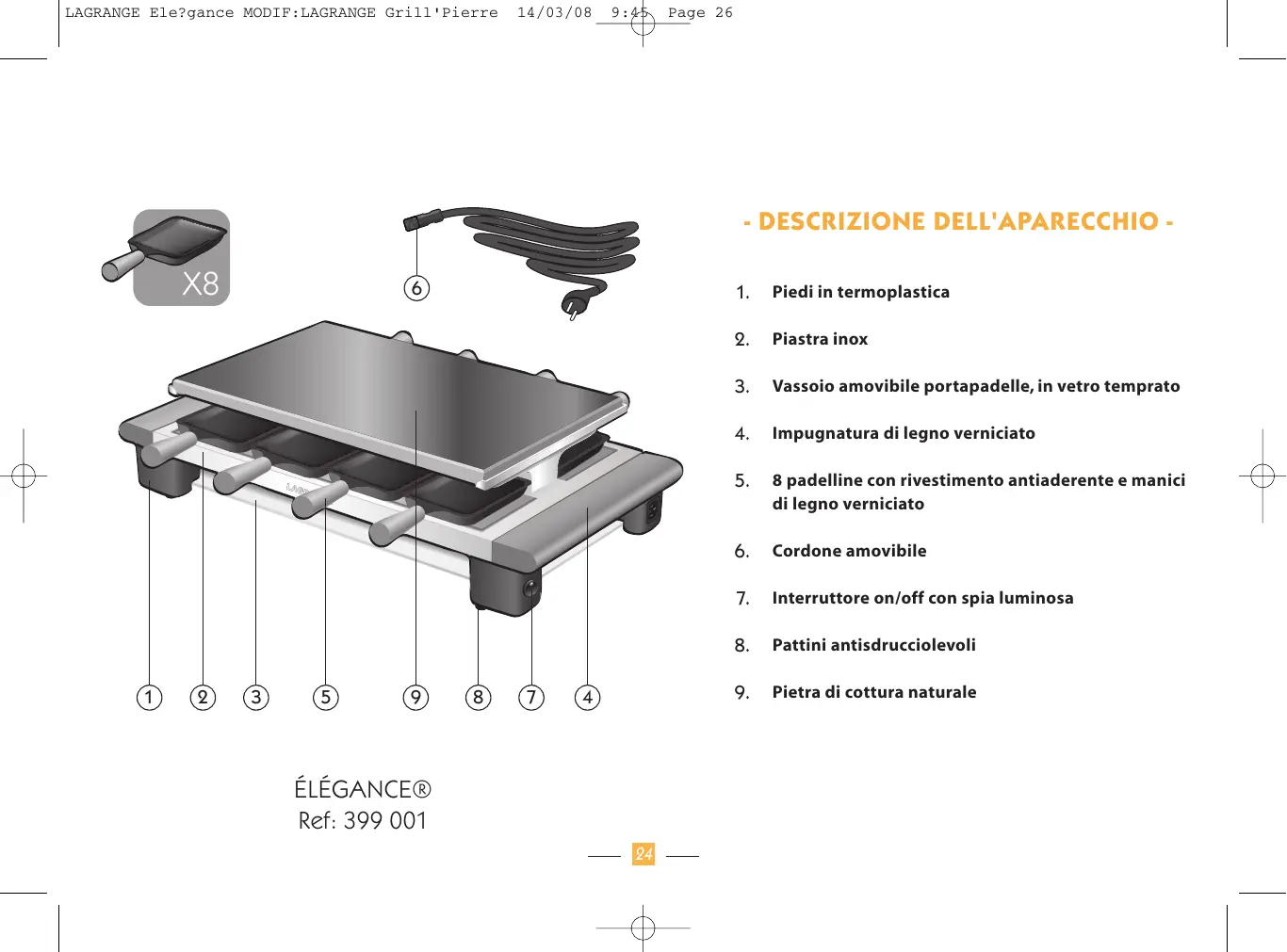 MANUALE UTENTE RACLETTE PIERRE ELEGANCE LAGRANGE