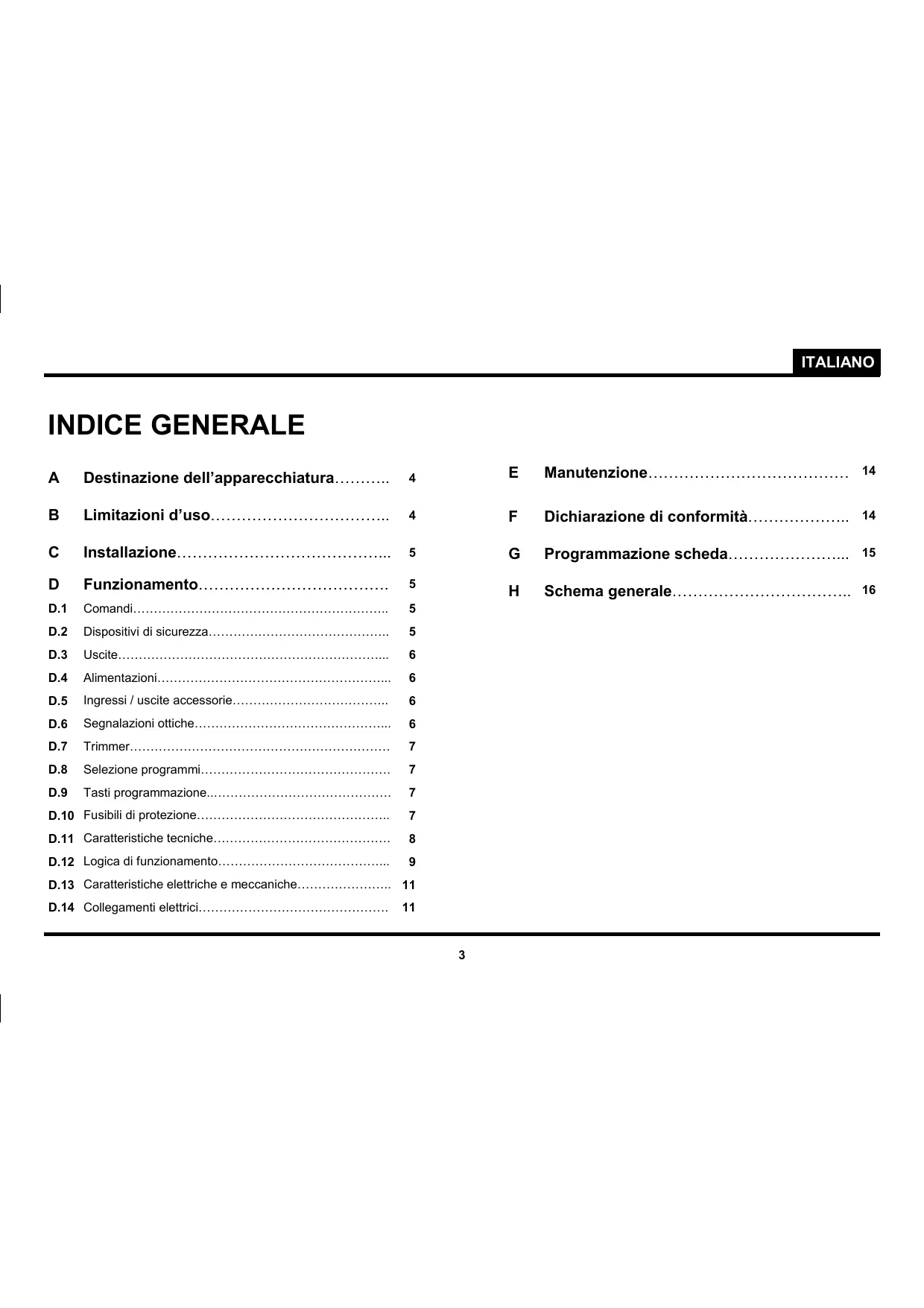 D.13 Caratteristiche elettriche e meccaniche………………….. 11 D.14 Collegamenti elettrici……………………………………….