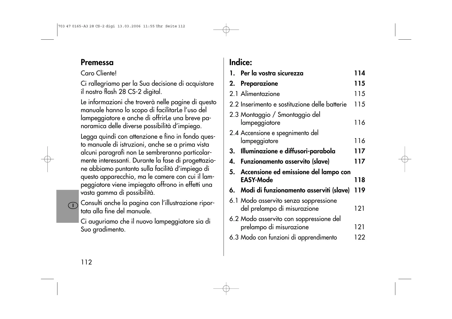 Le informazioni che troverà nelle pagine di quello manuale hanno lo scopo di facilitarLe l'uso del lampeggiatore eanche di offrirLe una breve panorama delle diverse possibilità d'impiego.